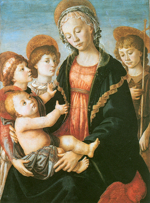ผลงานจิตรกรรมสีฝุ่นชื่อ Adoration of the Magi เขียนขึ้นระหว่างค.ศ. 1465-67 ซึ่งเป็นผลงานยุคแรก ๆ ของบอตติเชลลินั้น ยังคงมีเนื้อหาเกี่ยวเนื่องกับคริสตร์ศาสนา มีรูปแบบและวิธีการเช่นเดียวกับผลงานจิตรกรรมที่จิตรกรรุ่นก่อน เช่น เวร์รอคคิโอ ( Andrea dei Verrocchio ศิลปินชาวอิตาลี มีชีวิตอยู่ระหว่าง ค.ศ. 1435-88 ศิษย์ของโดนาเตลโล ( Donatello ) ศิลปินชาวอิตาลีมีชีวิตอยู่ระหว่าง ค.ศ. 1486-1496 ) ได้ทำมาแล้ว ผลงานจิตรกรรมช่วงต้น ๆ ของยุคฟื้นฟูศิลปวิทยานิยมเขียนภาพที่มีแสงเงาชัดเจน มีเส้นรอบนอกคมชัด การจัดวางองค์ประกอบและท่าทางของภาพบุคคลมักวางท่าอย่างละครไม่เป็นธรรมชาติ จึงทำให้เกิดความรู้สึกแข้งกระด้างไม่นุ่มนวล พื้นหลัง ( background ) มักทึบต้น แบบแผนเหล่านี้เป็นสิ่งที่สืบทอดกันมาตั้งแต่สมัยกลาง
